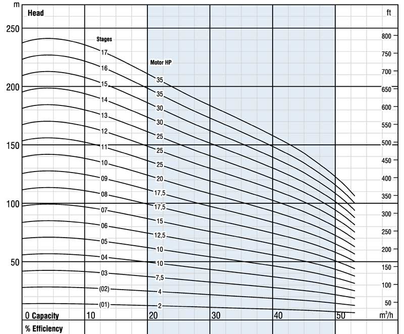 Die Ebara Brunnenpumpe BSP SS 6" 06036-08 13kW ist eine mehrstufige Pumpe aus Edelstahl für Fördermengen bis 50m³/h und einer maximale Förderhöhe von 112m.