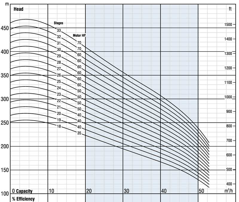 Die Ebara Brunnenpumpe BSP SS 6" 06036-20 30kW ist eine mehrstufige Pumpe aus Edelstahl für Fördermengen bis 50m³/h und einer maximale Förderhöhe von 279m.