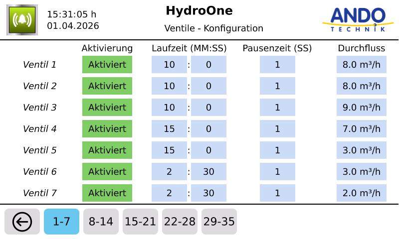 - ein Programm für manuelle Anforderungen von Ventilen (z.B. per Taster oder über Touchpanel)