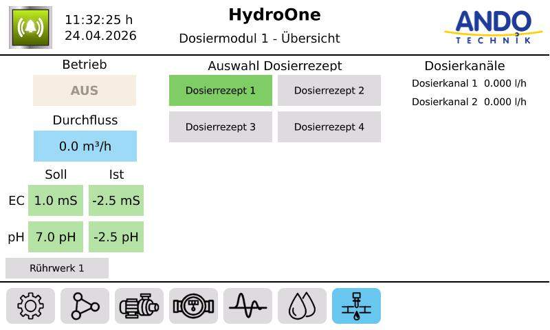 - EC- und pH-Wert Regelung auf Sollwerte aus Dosierrezepten