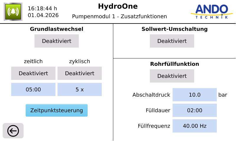 - Kopplung an Pumpenmodul möglich, dann folgende Funktionen:
